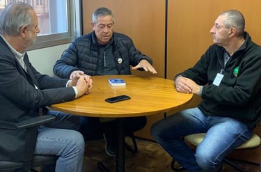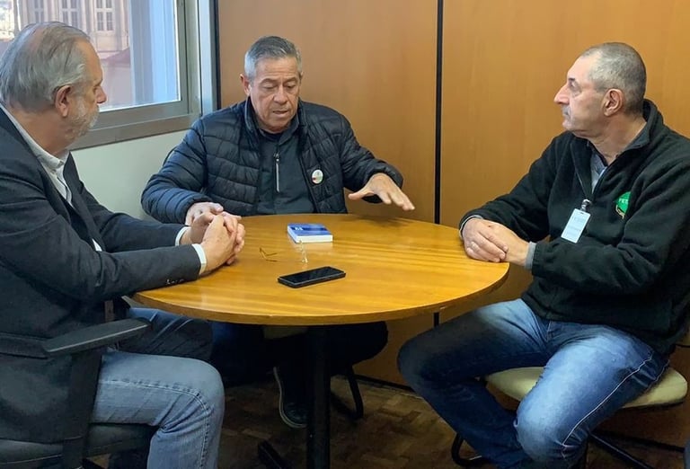 A Frente Sindical de Uruguaiana recebeu na última quinta-feira (15) o superintendente regional do Ministério do Trabalho e Emprego (MTE/RS), Claudir Nespollo, o coordenador-chefe de Fiscalização, Sérgio Garcia, e o chefe de fiscalização do MTE de Uruguaiana, Vitor Ferreira.