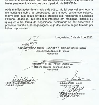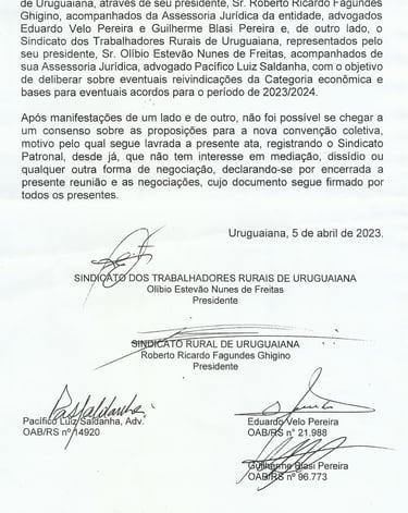 A Reunião para Negociação da Convenção Coletiva de Trabalho é encerrada com registro em ATA pelos empregadores que NÃO tem INTERESSE em mediação, dissídio ou qualquer outra forma de negociação.
