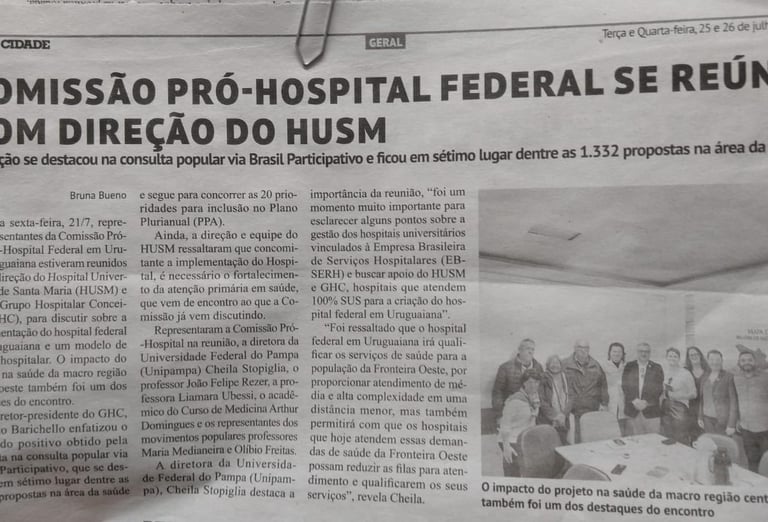 COMISSÃO PRÓ-HOSPITAL FEDERAL SE REUNE COM A DIREÇÃO DO HUSM